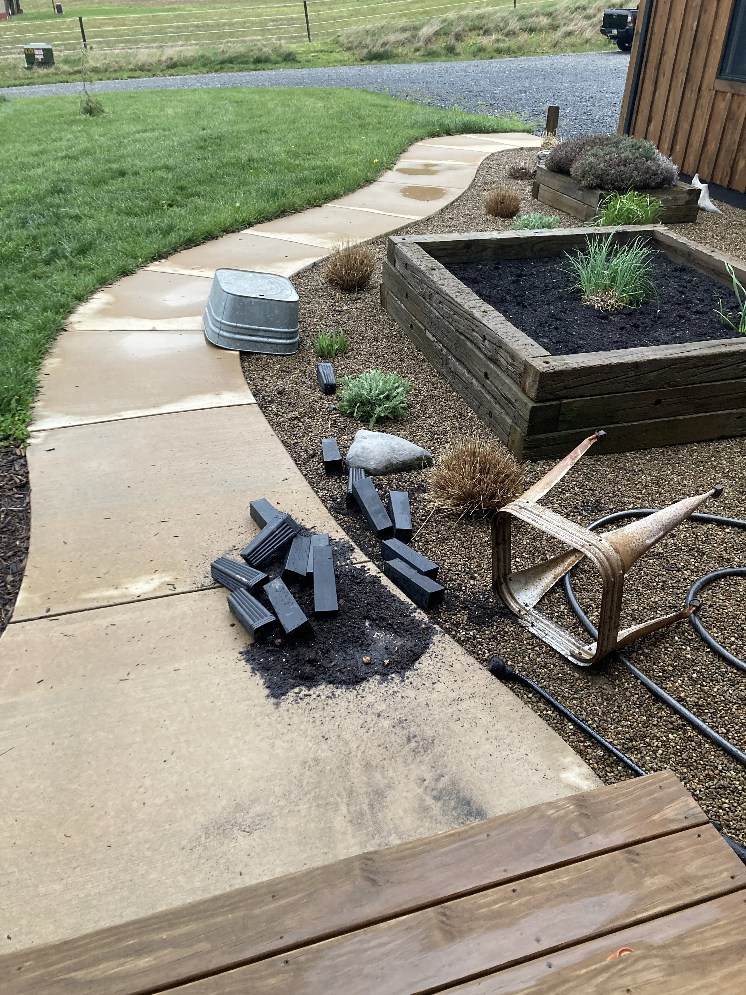 But on April 29th, a very strong line of storms would come through and wreak havoc. We did not receive any weather warnings about the strength and intensity of these storms, so I left my seedlings outside on our covered front deck in the vintage galvanized metal sink/tub I was using to hold them in. The strong wind gusts of the storm took and blew them right off the deck leaving the dirt and seedlings tossed in mess on our sidewalk.